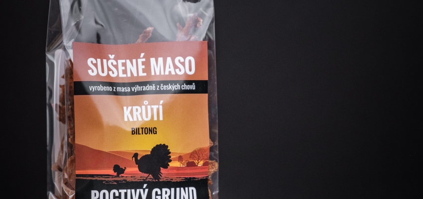 Krůtí sušené maso POCTIVÝ GRUND bylo novinkou roku 2018. Zákazníci si naše krůtí sušené maso okamžitě zamilovali pro jeho výtečnou chuť řízlou delikát…