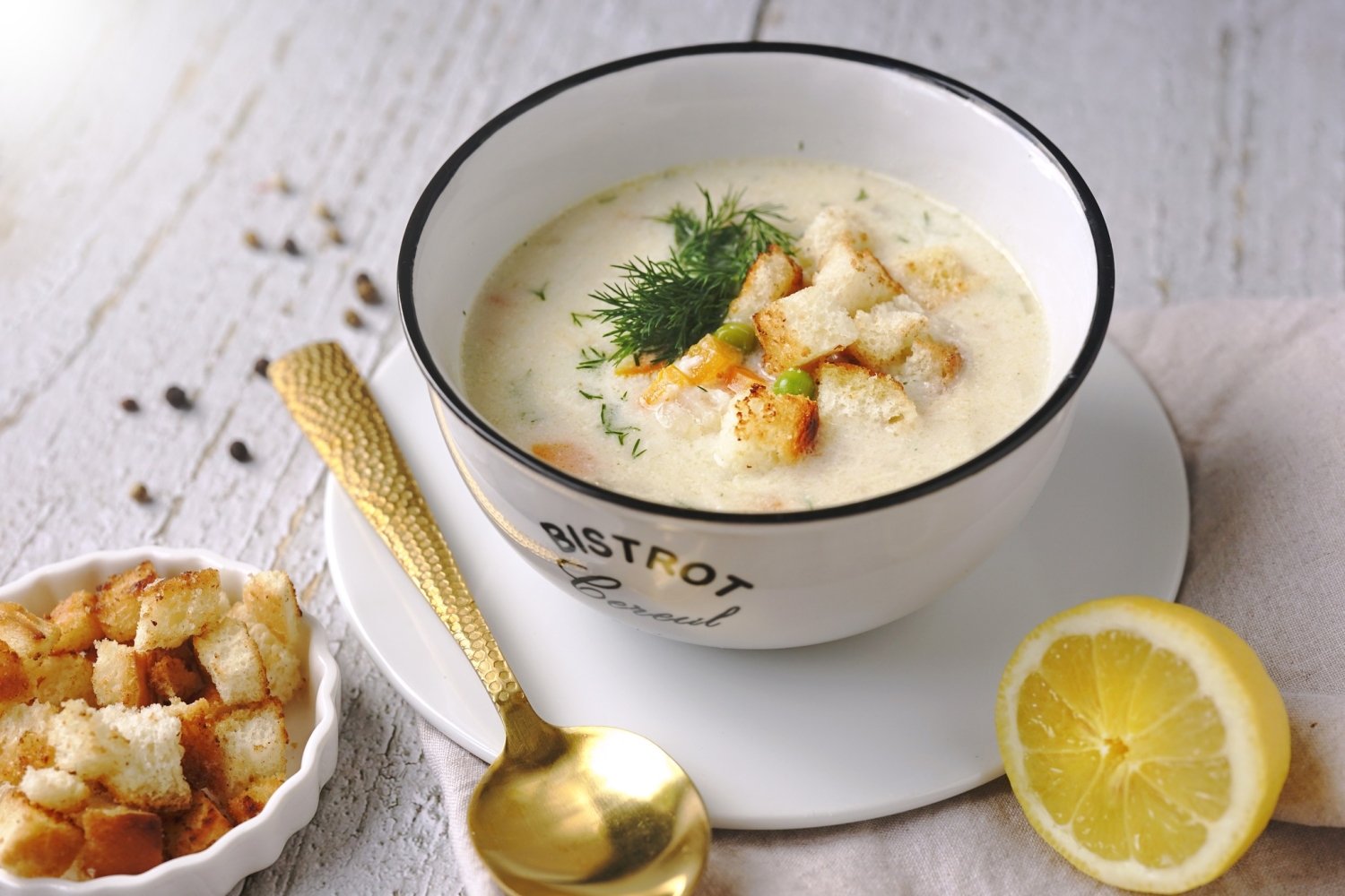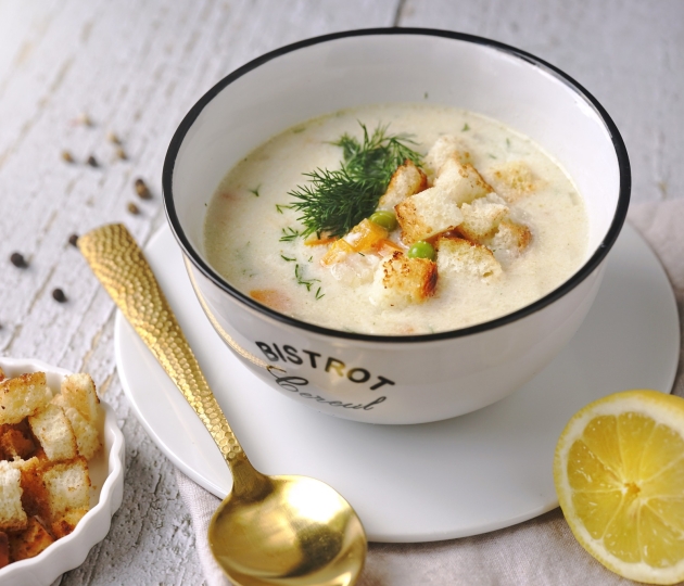 Nakonec dejte do polévky nasekaný kopr. Polévku dochuťte citronovou šťávou, solí a pepřem.