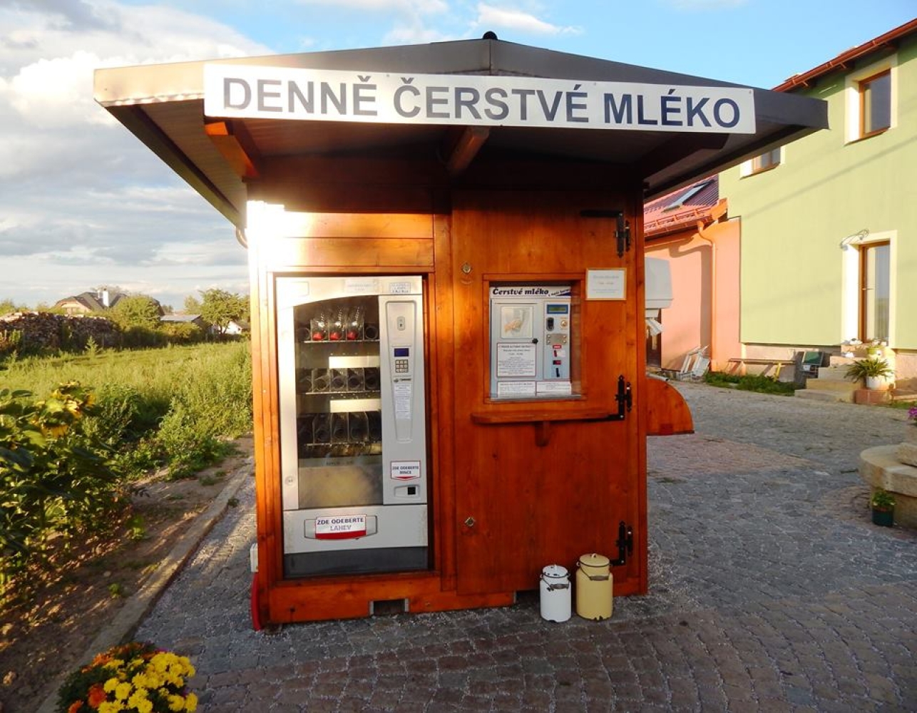 Z druhé strany domu provozujeme mlékomat, kde si každý den můžete načepovat čerstvé nepasterované mléko. Mlékomat je v provozu denně od 08:00 - 19:00 hodin. Čepovat můžete do svých nádob nebo je zde možné zakoupit litrovou plastovou nádobu.
