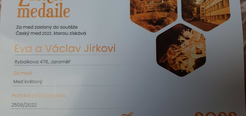 Chovem včel se s rodinou zabýváme od roku 2005. Včelstva máme umístěna v okolí Jaroměře v přírodním prostředí plném polí, luk a sadů, odkud včely nosí sladký nektar a zpracovávají jej na lahodný a voňavý med. Se včelami hospodaříme odpovědně, s ohledem na jejich potřeby, ale zároveň při využití moderních metod, aby byl náš med kvalitní a zároveň jej bylo dostatek. Včelaříme s láskou a srdcem, ale také rozumem. To se pak odráží na kvalitě našeho medu, který je téměř každoročně oceňován zlatou medailí v soutěži Český med.