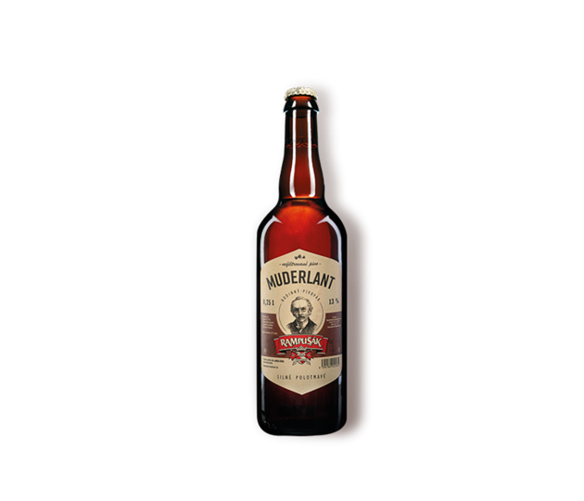 13% Nefiltrované pivo, tudíž krásně zakalené pivovarskými kvasnicemi. Uvařené ze tří druhů sladů a chmelené žateckými chmely. Příjemná chuť karamelového sladu ve spojení s lehkou hořkostí žateckého chmele. Střední říz dává vyniknout chuti plzeňského, karamelového a bavorského sladu. Tmavě hnědá barva a béžová pěna, to je naše polotmavá 13% Muderlant. Pivo je nefiltrované, nepasterizované a bez použití konzervačních látek