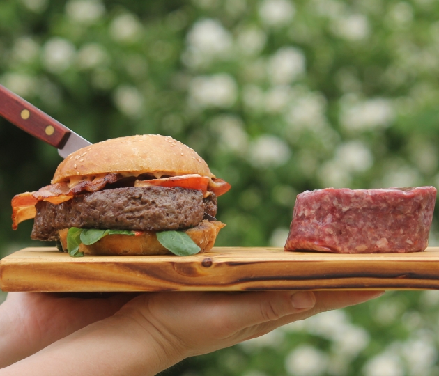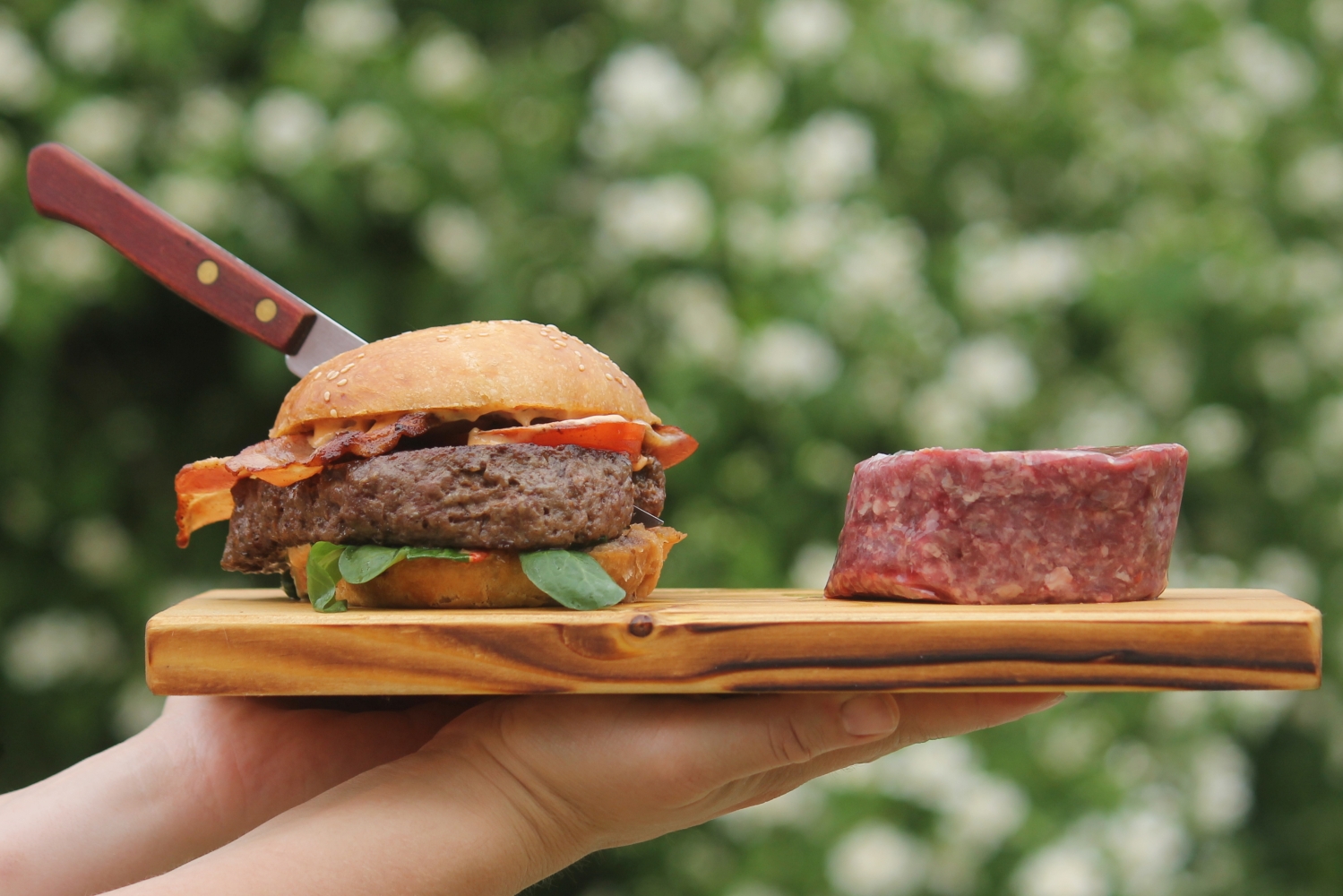 Burgr z hovězího maso z unás vyzrálého 45d Angus, farma Paseky