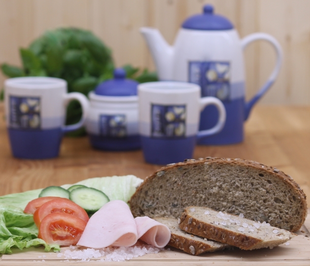 Složení výrobku: voda, mouka pšeničná, pekařská směs (dýňová semena, slunečnicová semena, pšeničná mouka, pšeničný lepek, lněná semena, ječná sladová mouka, drcené žito, pšeničná bobtnavá mouka, sůl, žitné sladové vločky, sušený žitný kvas, sójový šrot, stabilizátory guarová guma a E466, cukr, emulgátory E472e a řepkový lecitin, ovesné vločky, pšeničné klíčky, sušená syrovátka, látka zlepšující mouku kyselina askorbová, enzymy), mouka žitná, droždí, pekařský přípravek (žitný kvas (částečně pražená žitná mouka, voda, základ kvasu), kyselina octová), sůl s jódem.
