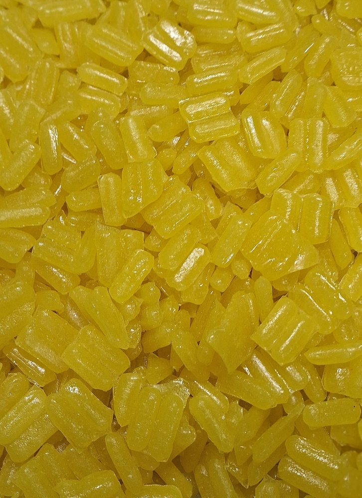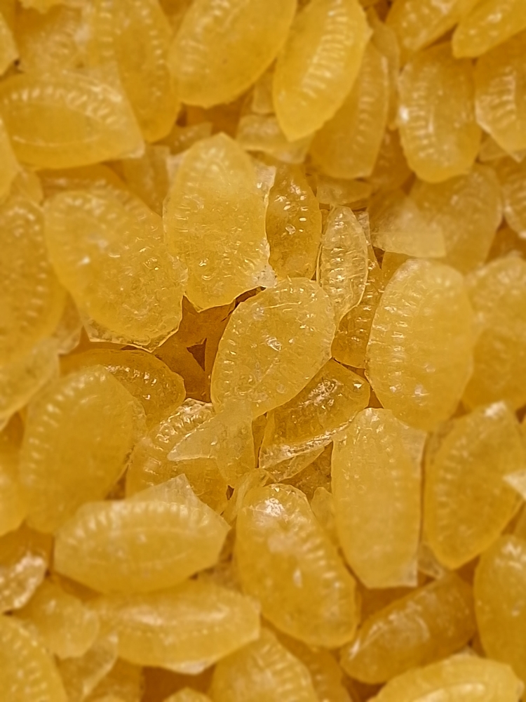 Složení: Cukr, glukózový sirup, kyselina citrónová, přírodní aroma citrón, přírodní barvivo – koncentrát ze světlice barvířské a citronu.