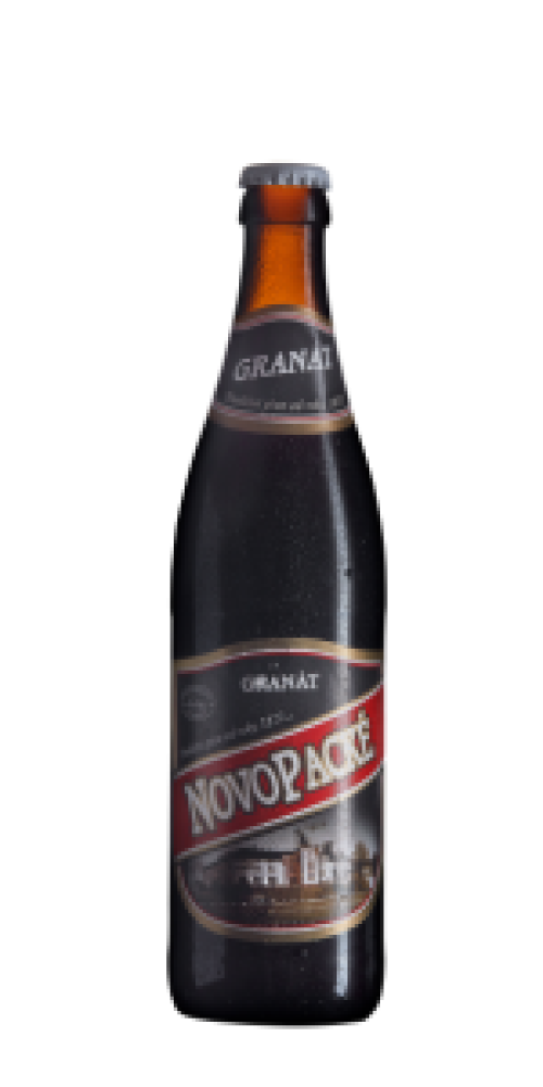 Kámen Český granát sbírali na našem území již staří Keltové. Je to kámen všesvazujícího ohně, vášně, ale i čistoty srdce. Obecně je však znám jako kámen lásky. Díky své typické barvě se začal jeho název přeneseně využívat ve spojení s barvou tmavých a polotmavých piv. Novopacký Granát je tmavý sladší ležák s kvalitní hustou pěnou vhodný k řezání světlých druhů, alkohol 5,3 %. Stáčí se do skleněných lahví NRW 0,5l, dále pak do nerezových sudů KEG 30l, 15l.