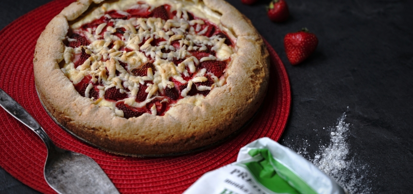 Na koláč potřebujeme: 300g Předměřické hladké mouky 150g másla 150g cukru krupice špetku soli 1 + 1 podestýlková vejce z Kosiček 1 lžičku prášku…