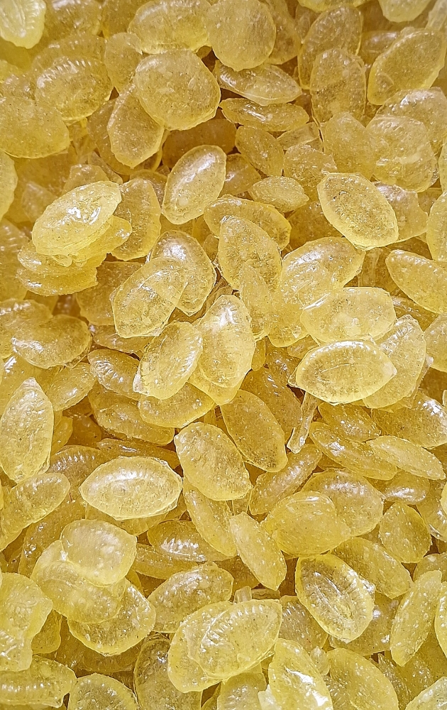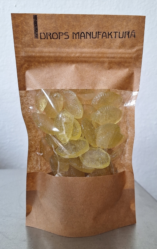 Složení: Cukr, glukózový sirup, kyselina citrónová, přírodní aroma jedle, přírodní barvivo koncentrát spiruliny a jablka.