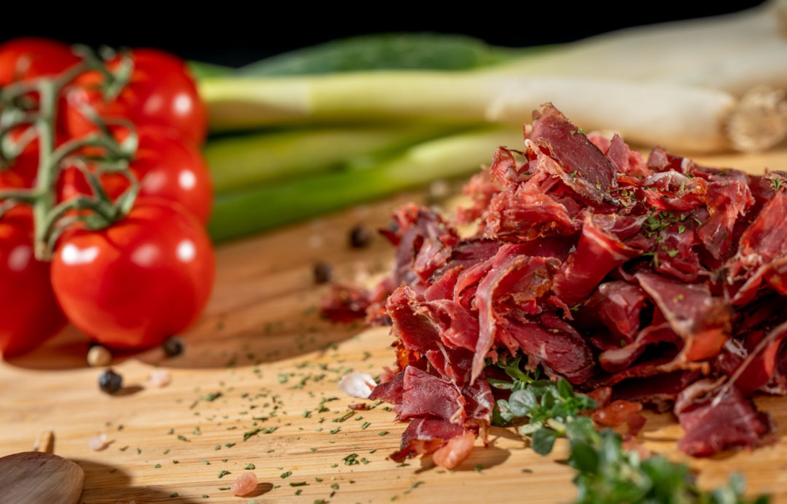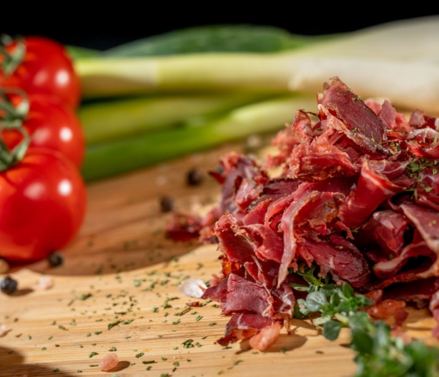 Jelení pršut, sušená šunka nejvyšší kvality, mistrovské dílo vyráběné našimi řezníky. Jelení pršut se vyrábí z vyzrálého jeleního masa. Výroba probíhá několik měsíců, postupnou ztrátou sušením dochází k odjímání vody a tím se výrazně zvyšuje trvanlivost výrobku. S časem a zráním se zvyšuje intenzita přírodního aroma masa.