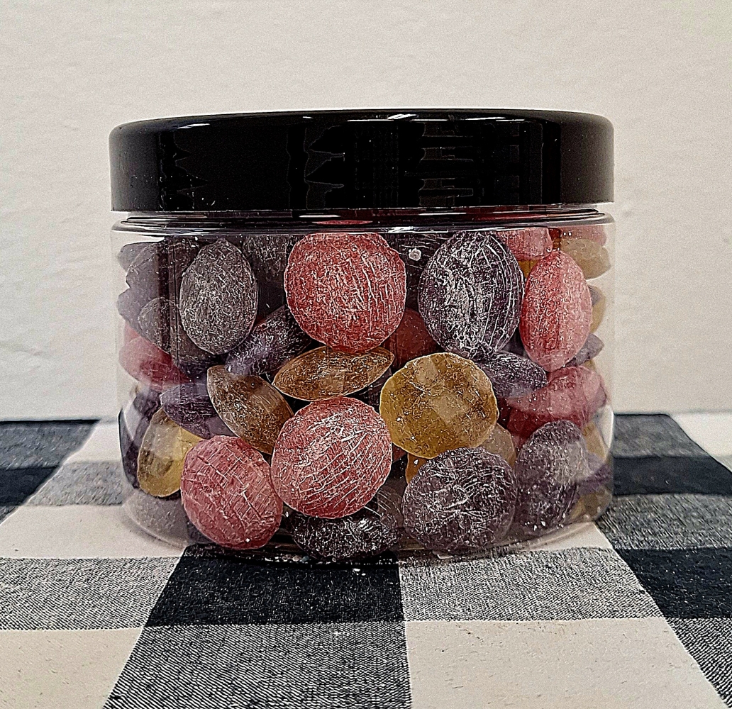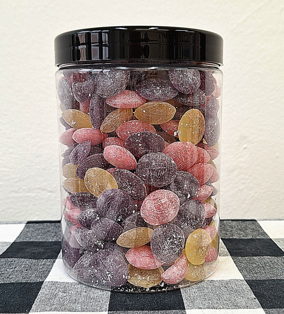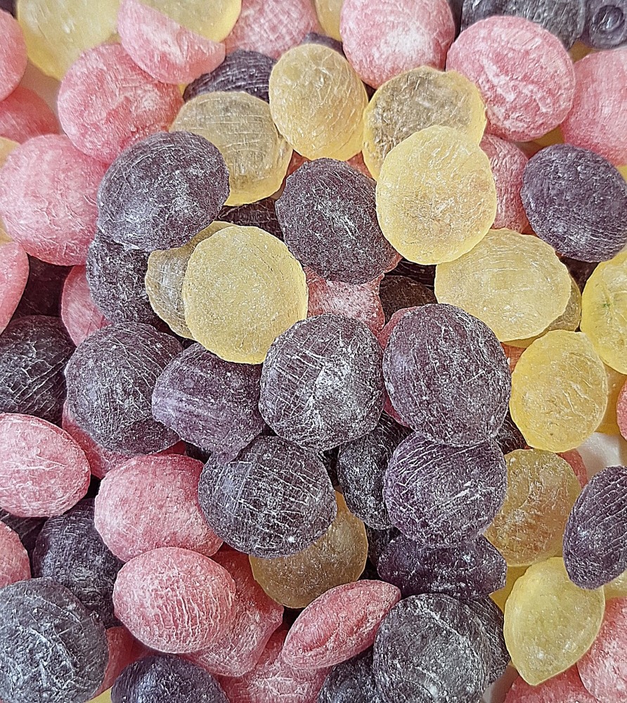Složení: Cukr, glukózový sirup, kyselina citronová, aroma fialka, přírodní aroma růže, levandule, bezový květ, přírodní barviva extrakt z červené řepy, koncentrát spiruliny a jablka, červeň karmínová.