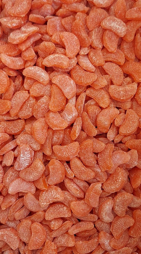 Složení: Cukr, glukózový sirup, kyselina citronová, přírodní aroma mandarinka, přírodní barviva extrakt z červené řepy a kurkumy.