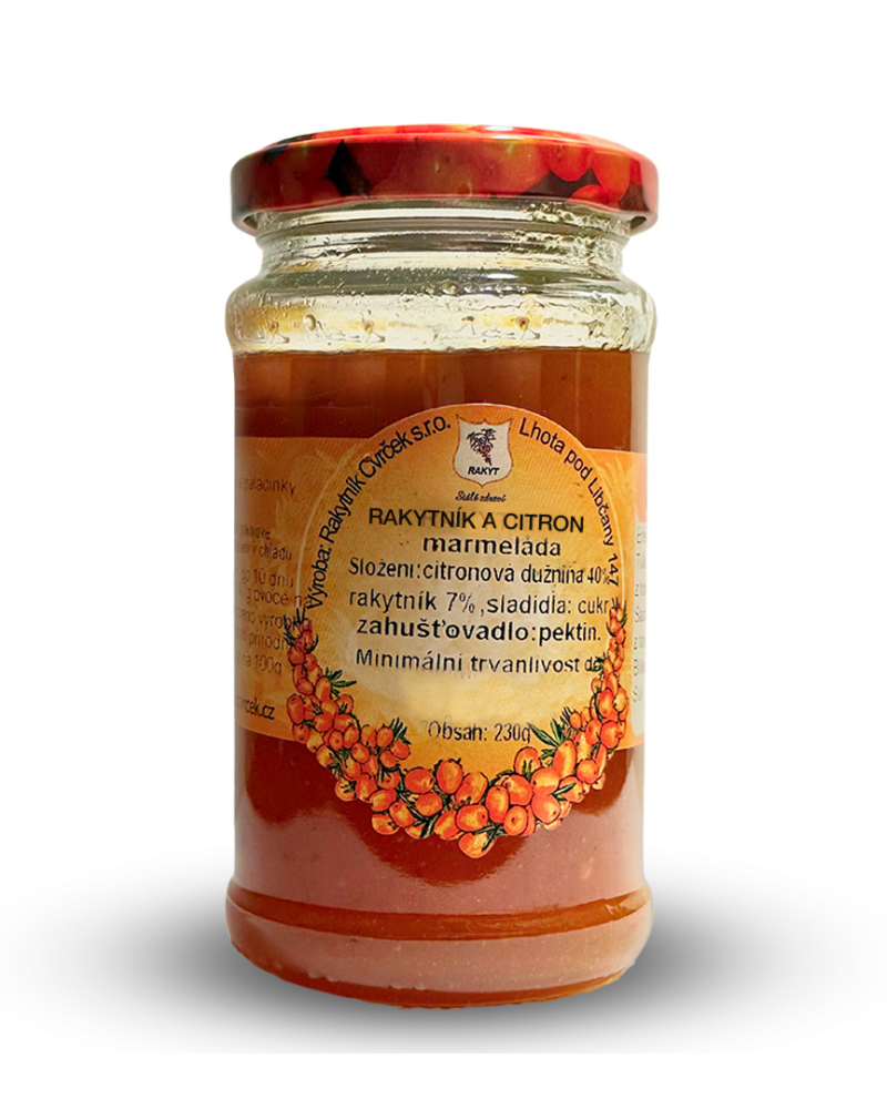 Složení: Citron 40%, rakytník 7%, sladidla: cukr, zahušťovadlo: pektin.