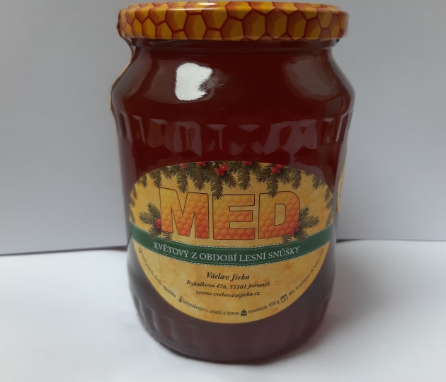V roce 2023 se nám díky příznivému počasí po několika letech opět urodil vzácný tmavý med z lesní snůšky, který obsahuje podíl medovice i nektarového medu. Medovice vzniká za spolupráce savého hmyzu, jako jsou např. mšice, ze šťáv stromů a keřů. Med je tmavší než květový, mívá výraznější chuť a vyšší obsah minerálních látek. Co se týká kvality, jsou však všechny medy rovnocenné. K odběru je u nás v Jaroměři nejlépe po předchozí dohodě nebo na dalších prodejních místech. Balení je ve skleničce 950 g za 200 Kč. Med se srdcem!
