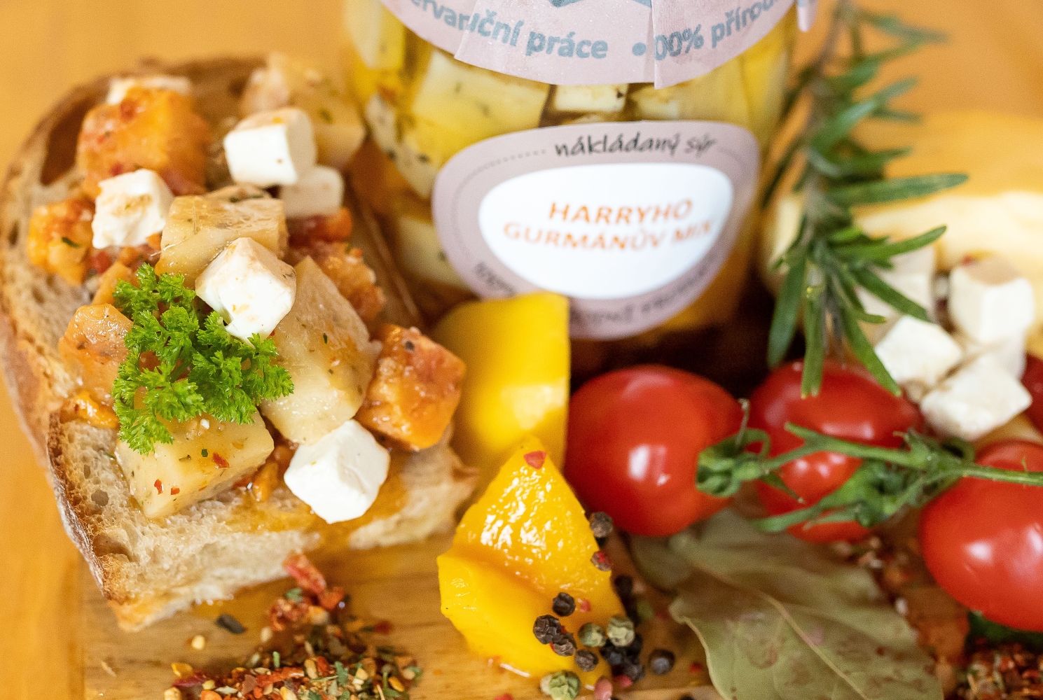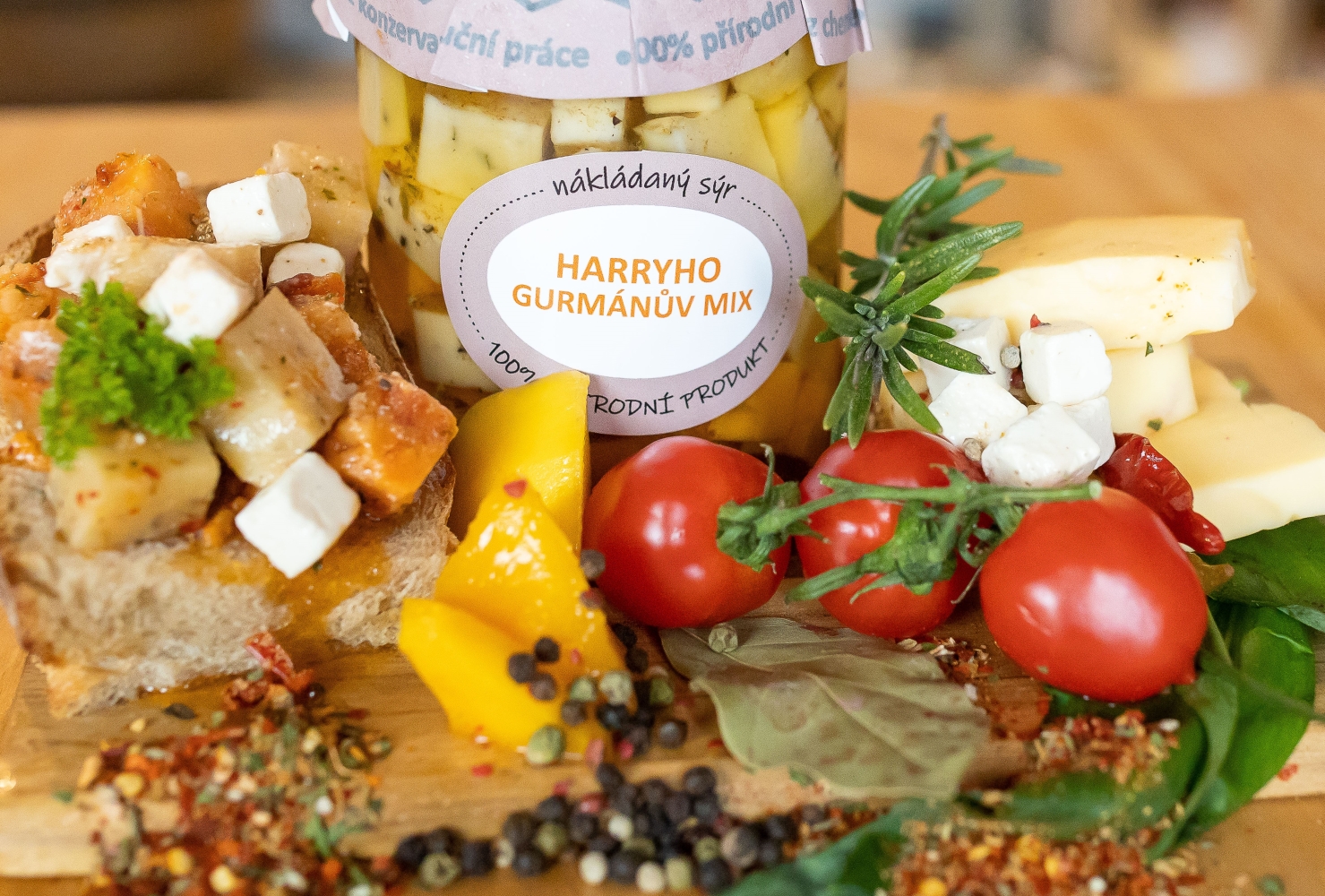 Ručně nakládaný Harryho Gurmánův mix sýrů je tradiční delikatesou nejen k pivu a vínu.
