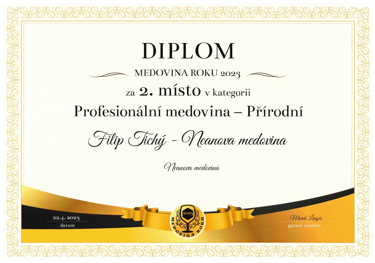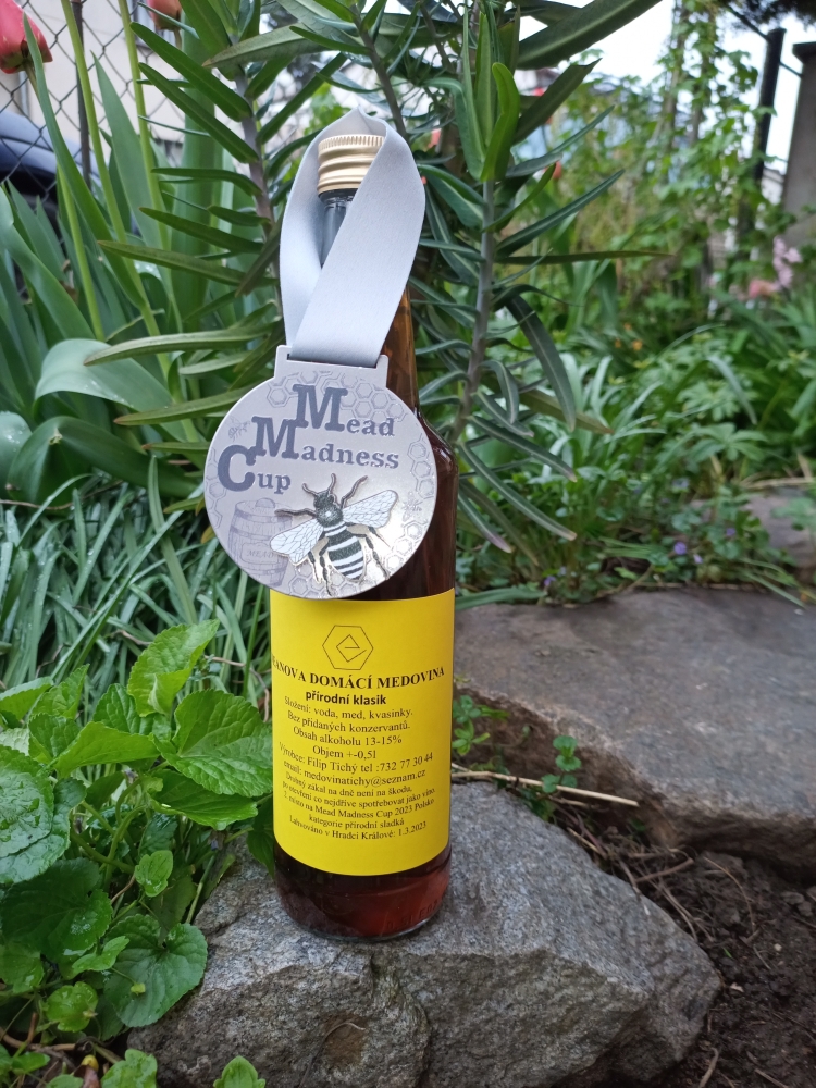 V roce 2023 jsem získal 2. místo na mistrovství ČR medovin - Medovina Roku 2023 Kategorie profesionální přírodní a 2. místo na mistrovství Evropy Mead Madness cup 2023 - Kategorie PRO - přírodní sladká Medovina. Zraje 2 roky a je prodávám ji v lahvích 0,5l a 0,2l.