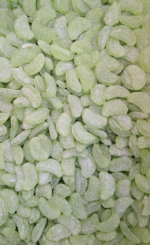 Složení: Cukr, glukózový sirup, kyselina citronová, přírodní aroma pomelo, přírodní barvivo – koncentrát jablka a spiruliny.