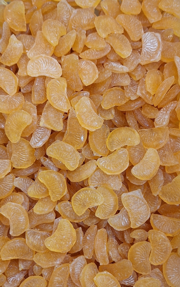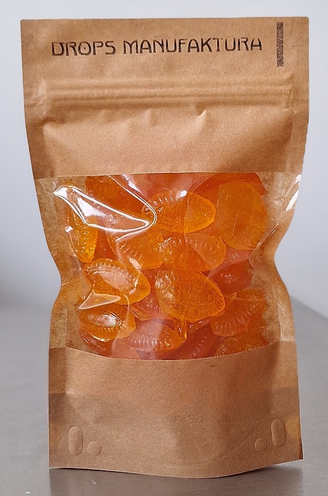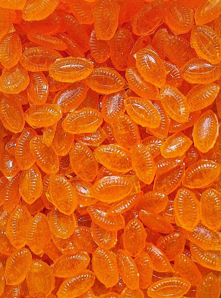 Složení: Cukr, glukózový sirup, kyselina citrónová, přírodní aroma pomeranč, přírodní barviva extrakt z červené řepy a kurkumy.