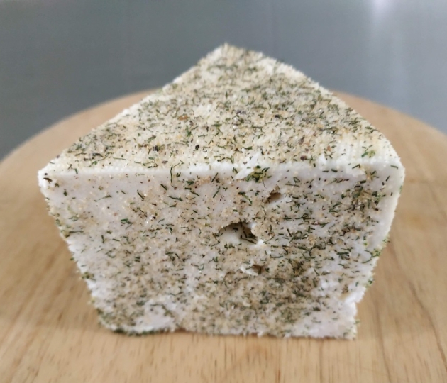 Složení: pasterované kozí mléko, čisté holandské mlékárenské kultury, růžová himalájská sůl, směs koření- sušeného česneku, kopru, bílého pepře.