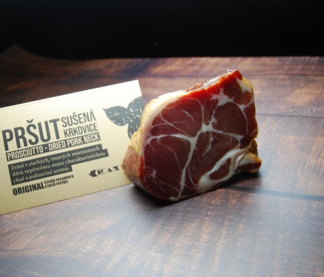 Na 100 kg hotového výrobku bylo použíto162 kg masa: vepřové maso - krkovice bez kosti, jedlá sůl, E250 konzervant, E316 antioxidant, směs koření. Skladovat do 20 °C, min. trvanlivost 120 dní. Bez lepku.