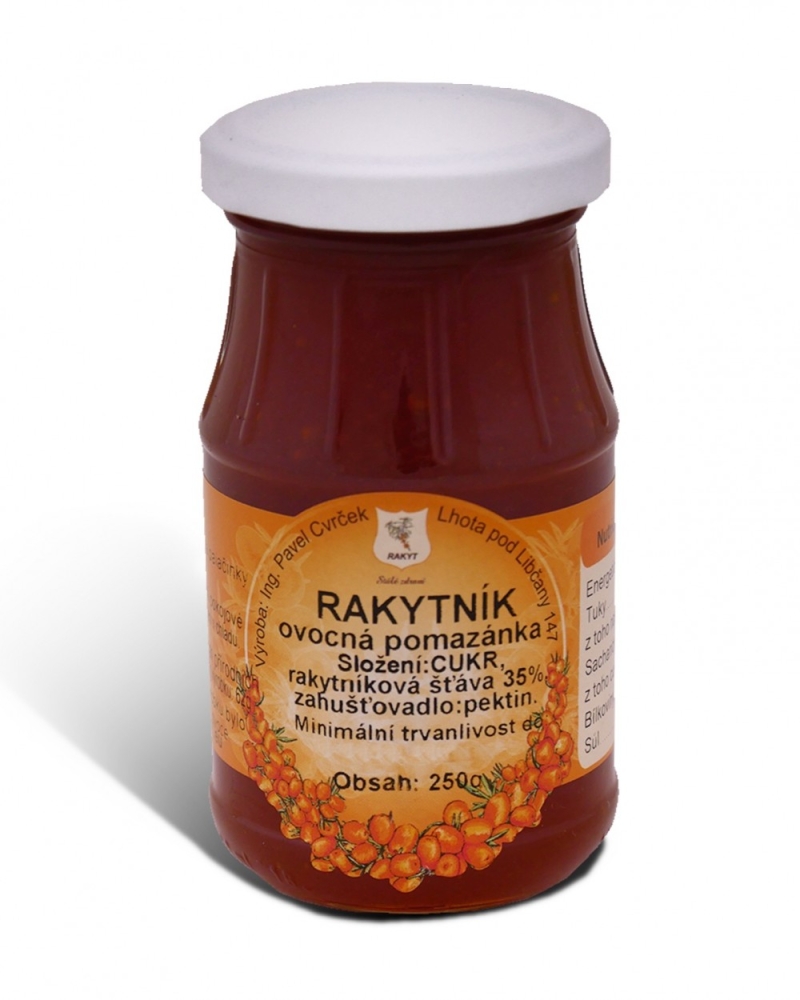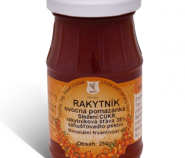 Složení: sladidla: cukr, rakytníková šťáva 35%, zahušťovadla: pektin.