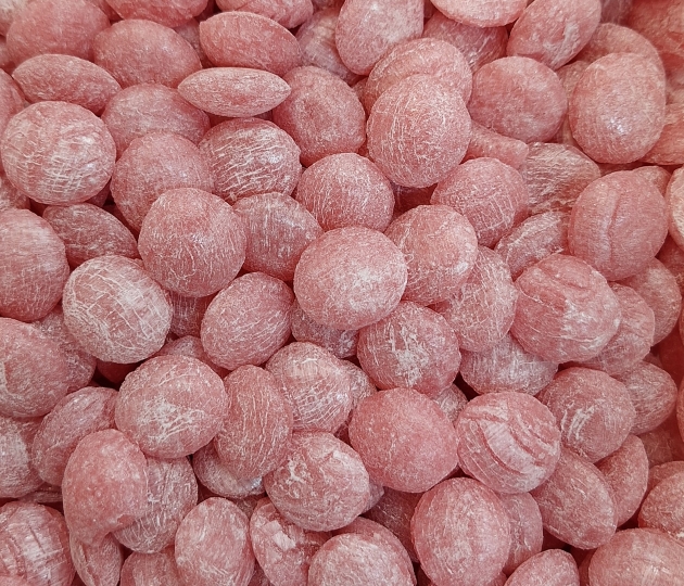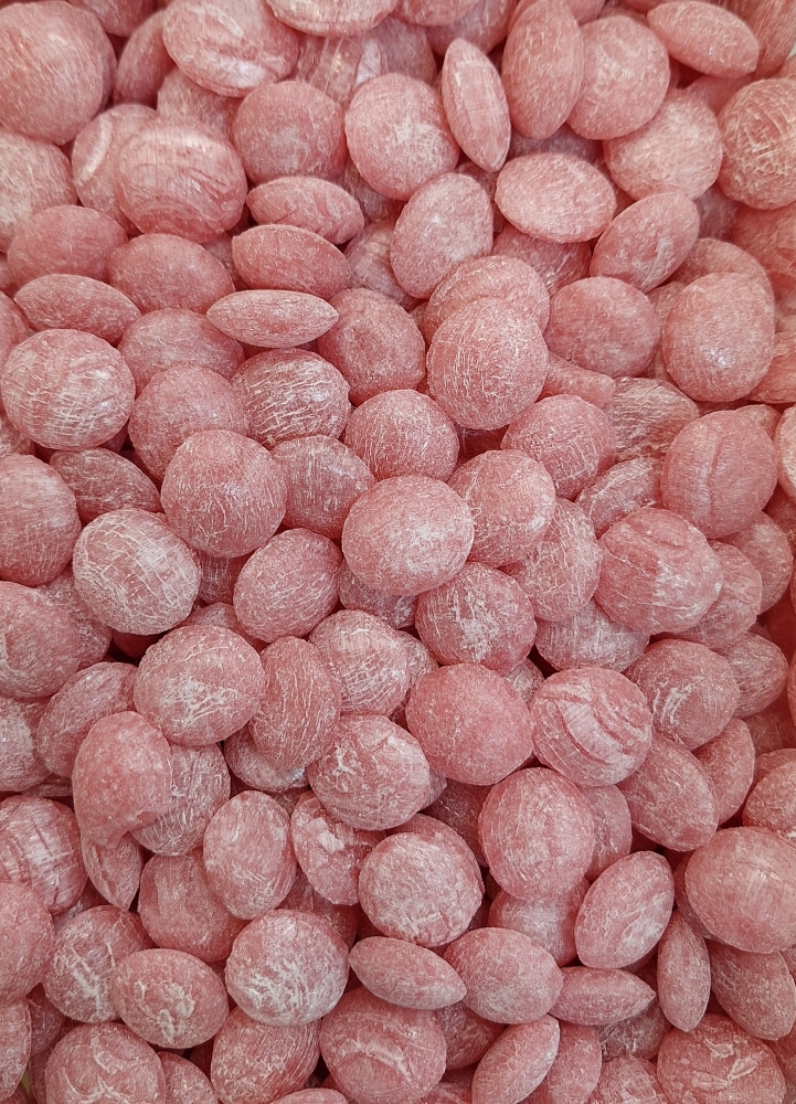 Složení: Cukr, glukózový sirup, kyselina citronová, přírodní aroma růže, přírodní barvivo červeň karmínová.