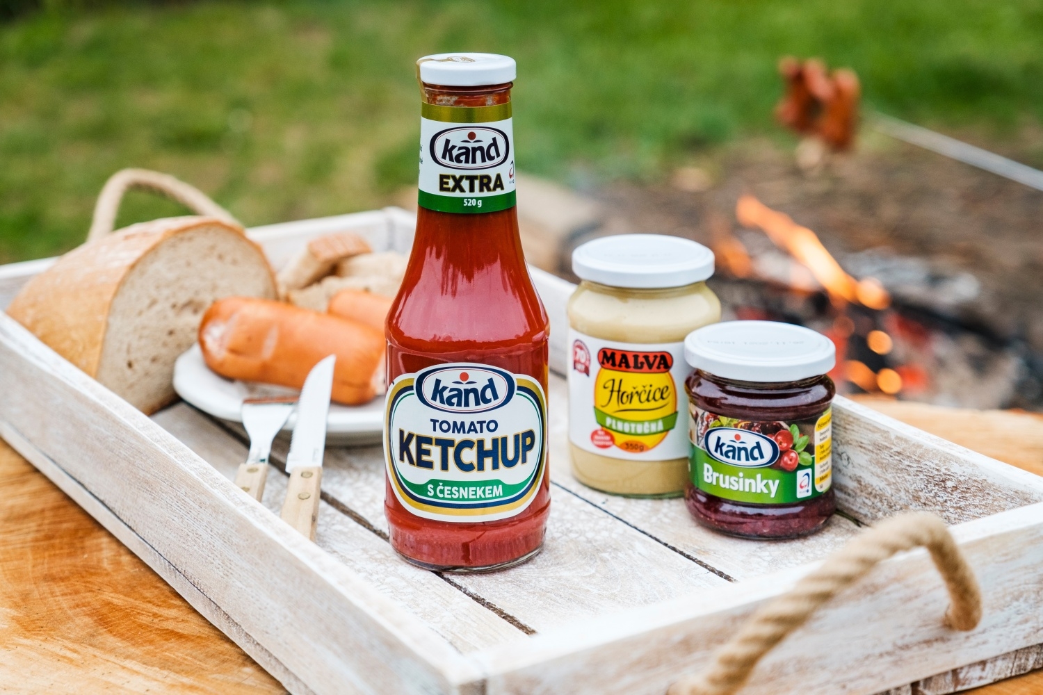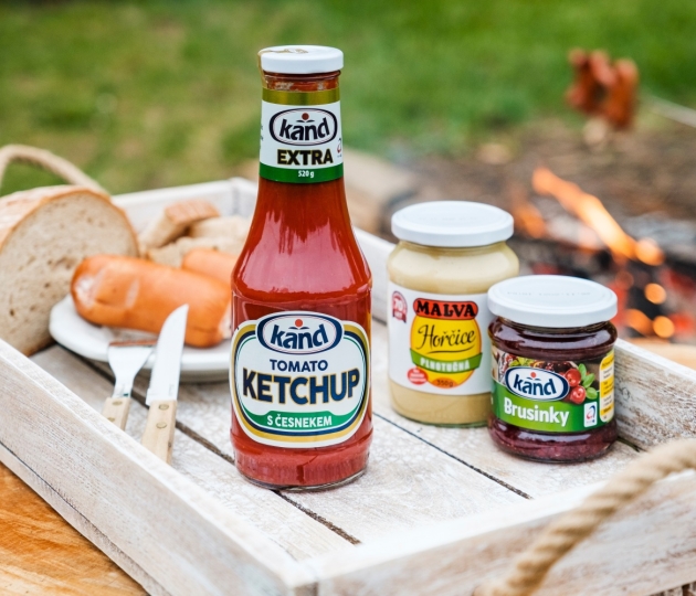 Tradiční receptura KAND. Kečup EXTRA s vysokým obsahem rajčat a se skvělou chutí česneku.