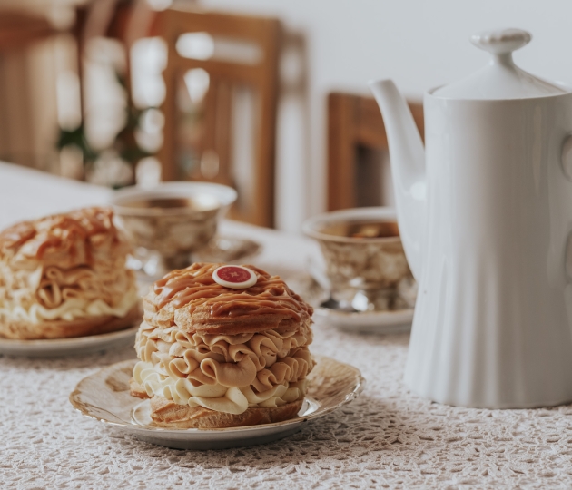 Tradiční český zákusek oblíbený po celé republice. Korpus je z odpalovaného těsta plněný máslovo-pudingovým krémem a karamelovou šlehačkou z vysokoprocentní smetany a domácím karamelem. Pečeme pro Vás i MAXIVĚTRNÍKY ve velikosti dortu.