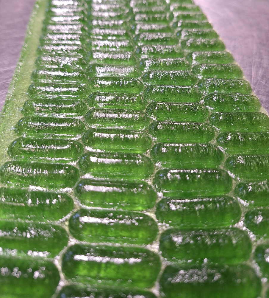 Složení: Cukr, glukózový sirup, kyselina citrónová, aroma jablko, přírodní barvivo koncentrát spiruliny a jablka.