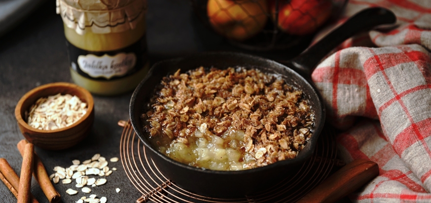 400 g Ovoce v gelu - jablka kostky 1/2 lžičky mleté skořice špetka mletého muškátového oříšku 3/4 hrnku hnědého cukru 1/2 lžičky soli 1 hrnek o…